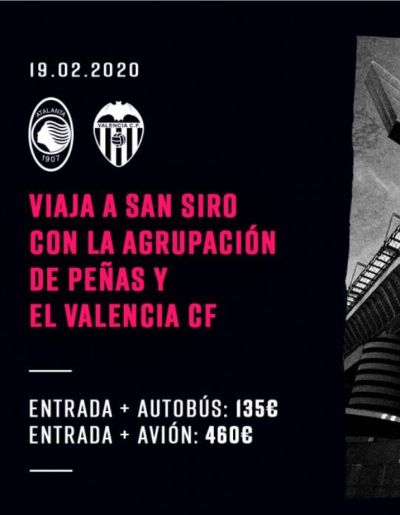 Volevo darvi uno spunto di riflessione partendo da come il Valencia FC sta gestendo e organizzando la trasferta a San Siro per la partita con l'Atalanta del prossimo 19 Febbraio 2020.