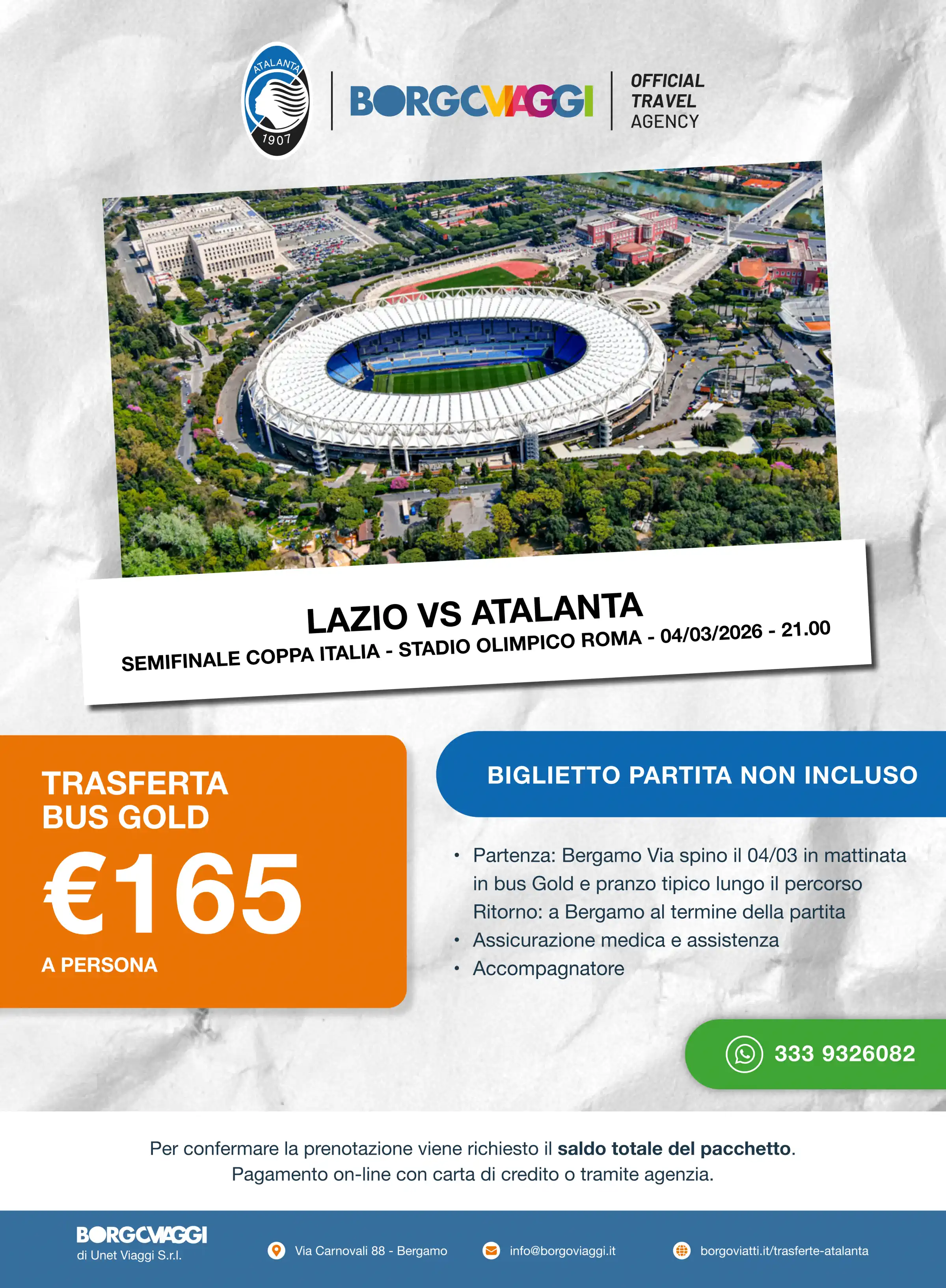 La proposta del vettore ufficiale Borgo Viaggi per Roma (Coppa Italia)