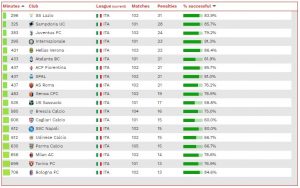 Tra i club domina la Stella Rossa - di Dejan Stankovic, che ha tirato dal dischetto per ben 44 volte in 102 partite nell'arco di tempo analizzato. La Lazio è la prima squadra dei cinque campionati più importanti, al nono posto con 31 rigori in 102 sfide, davanti alla Sampdoria (sedicesima con 28 in 101 partite), la Juventus (44esima con 24 in 102 partite) e l'Inter (56esima con 23 rigori in 101 partite). (tmw.com)