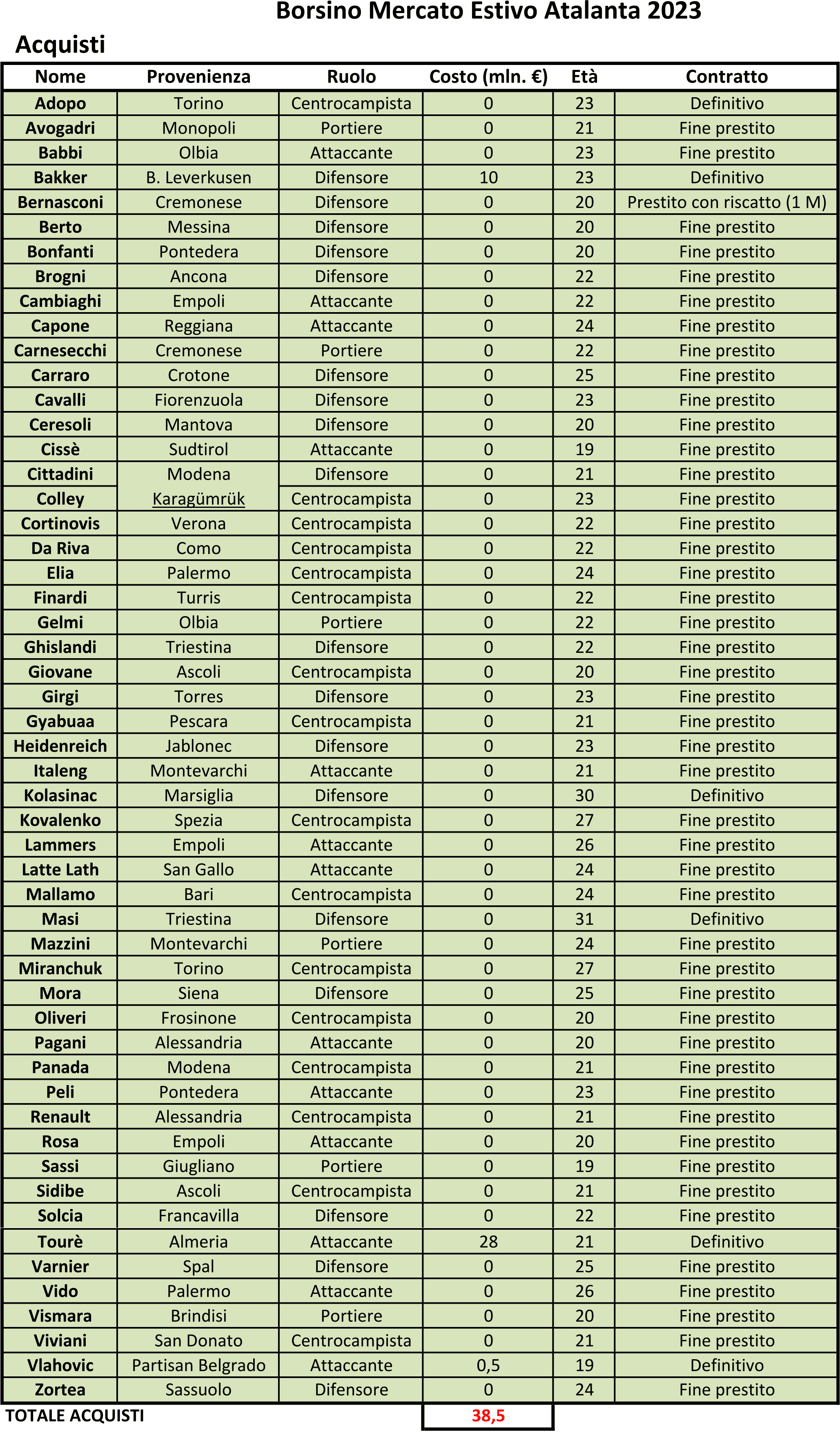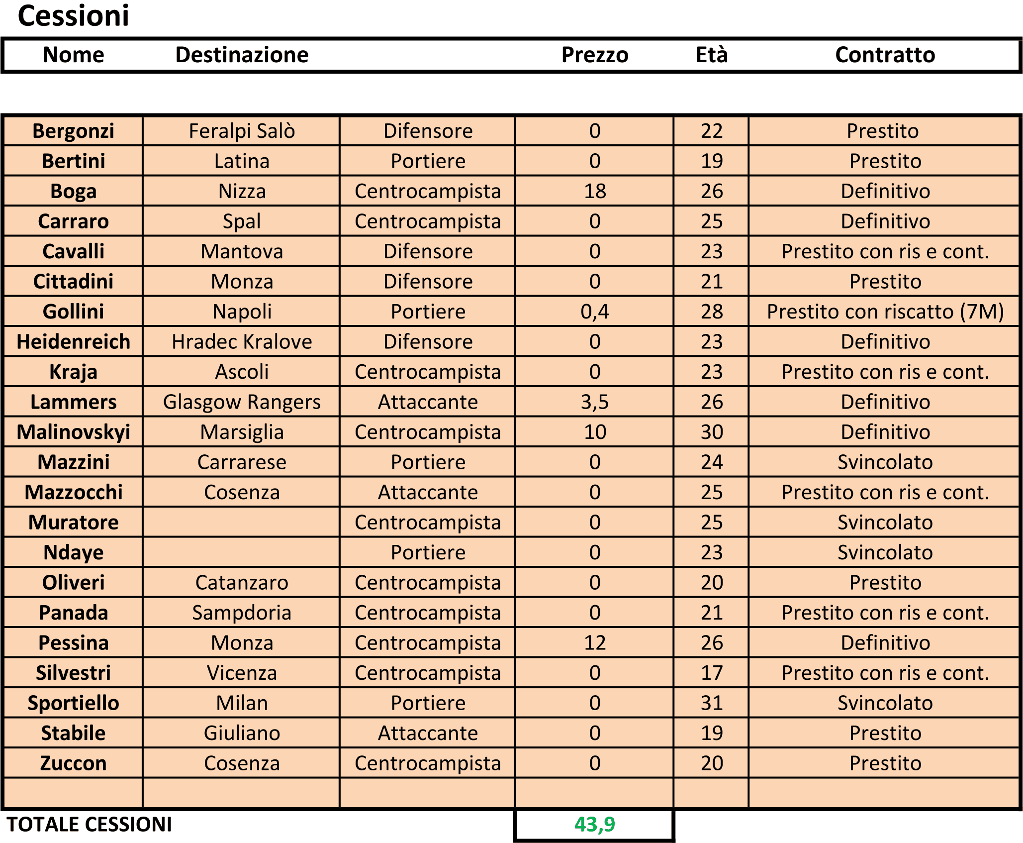LA TABELLA ACQUISTI - CESSIONI AD UN MESE DALLA FINE DEL MERCATO