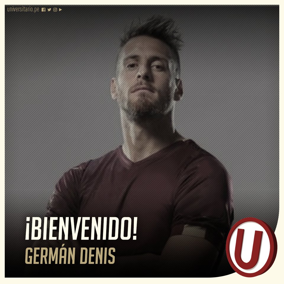 #BIENVENIDO | El delantero argentino #GermánDenis será nuevo jugador de @Universitario. ¡Bienvenido a la "U", @germandenis1981! ??????#BienvenidoTanqueDenis#YdaleU pic.twitter.com/KiNfzrJNW2