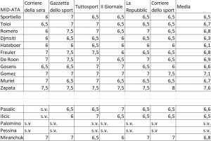 A Miranchuk viene assegnato, complice la perla della sua rete, un voto da tutte le testate nonostante i pochi minuti giocati. I suoi voti vanno dal 6 al 7
