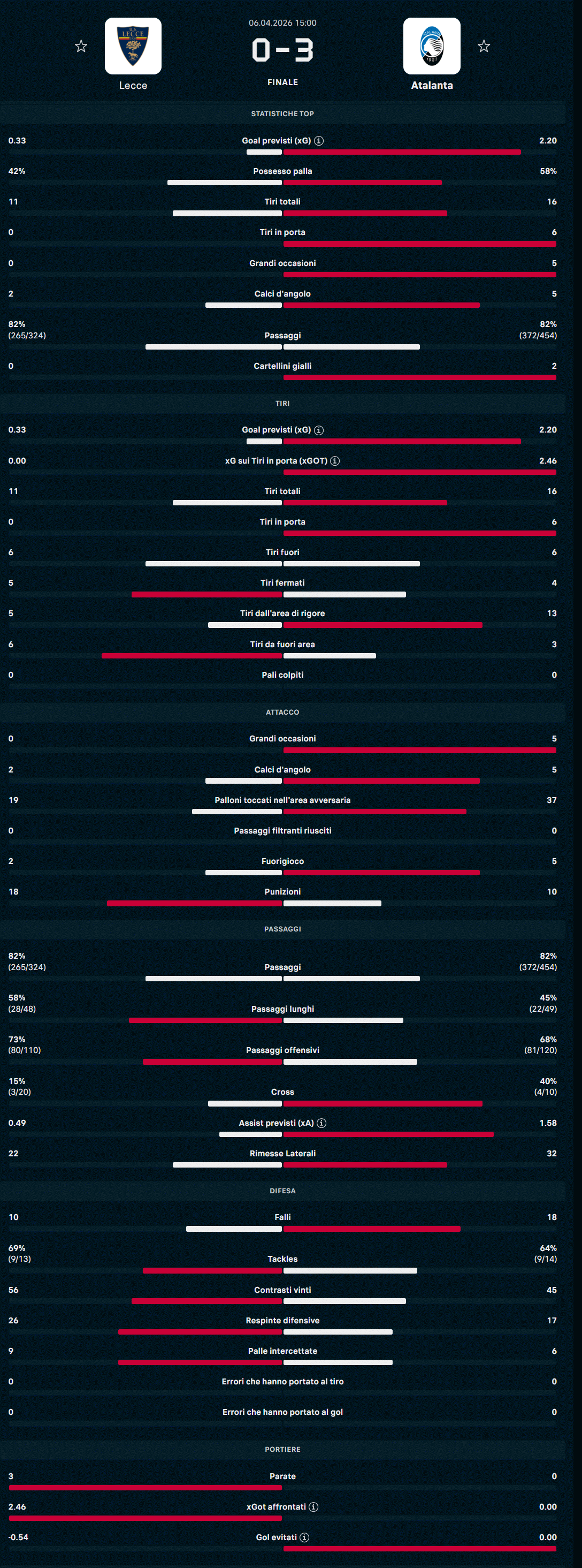 Le statistiche (da vedere) di Lecce - Atalanta
