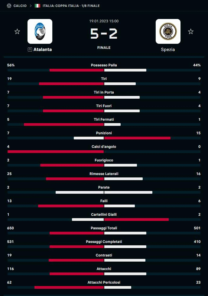Le statistiche di Atalanta - Spezia