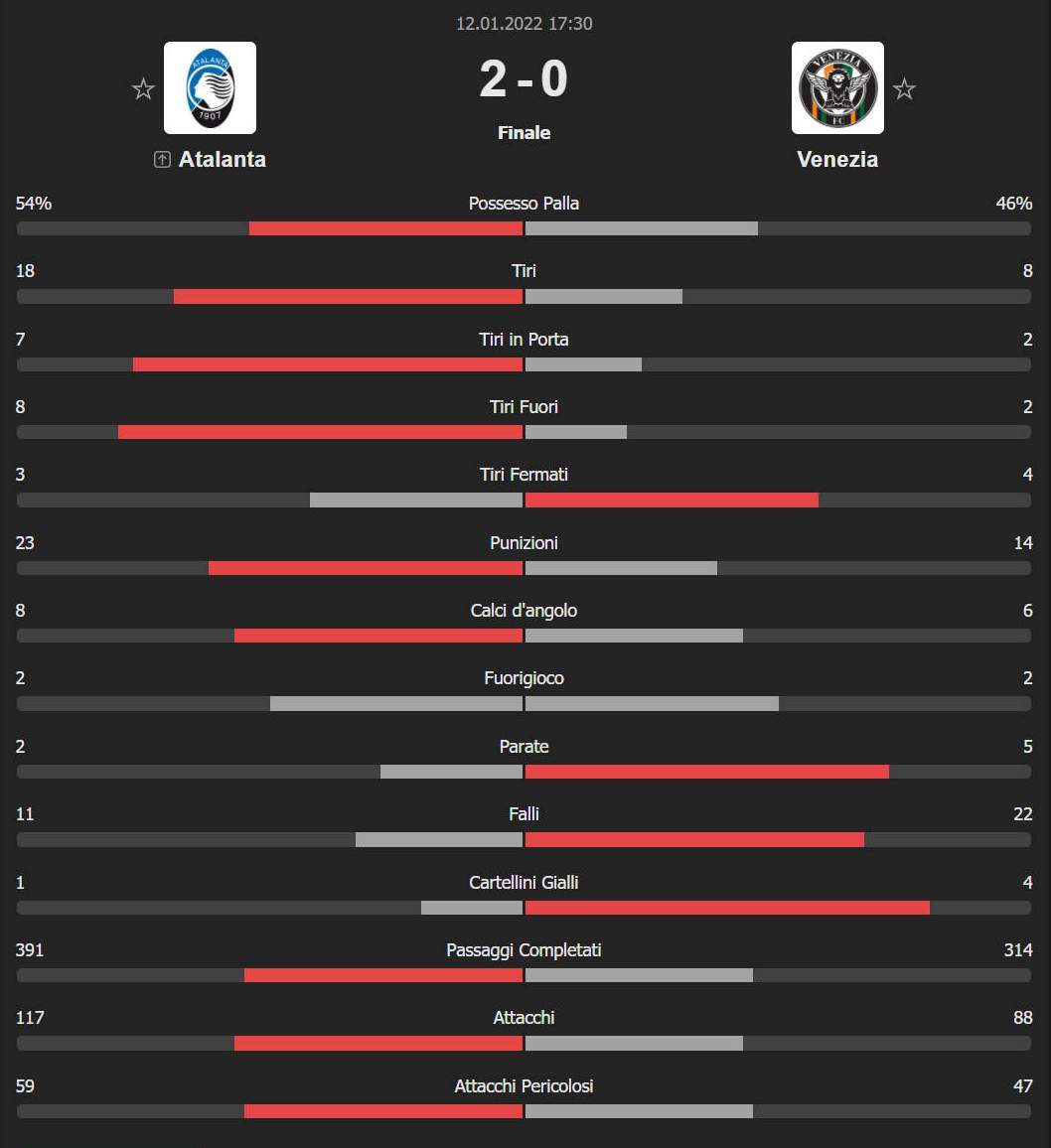 Le statistiche di Atalanta - Venezia