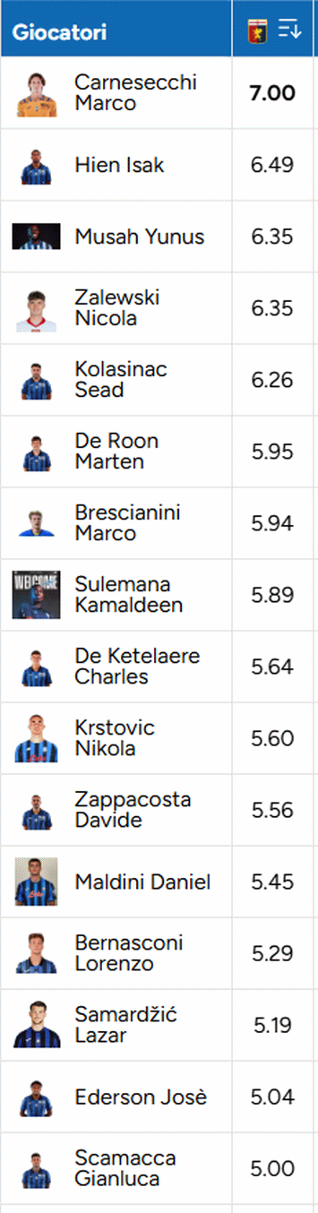 Al terzo posto a pari merito i due nuovi acquisti Musah e Zalewski, una buona promessa per il futuro.