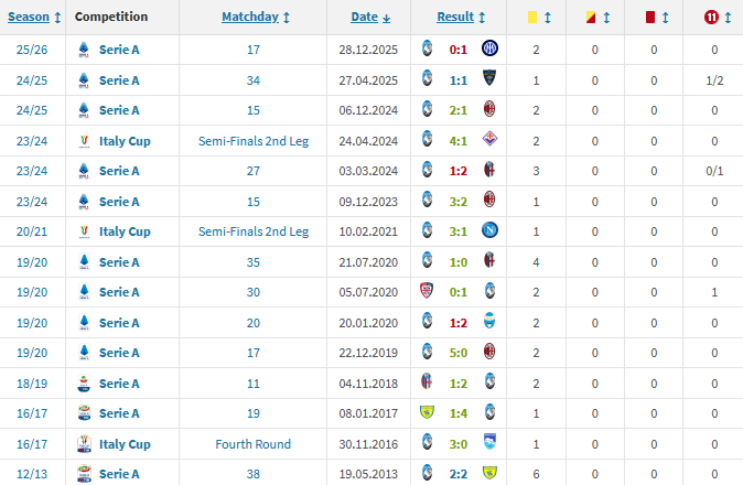 Sarà la sedicesima direzione di La Penna con l'Atalanta, la seconda quest'anno