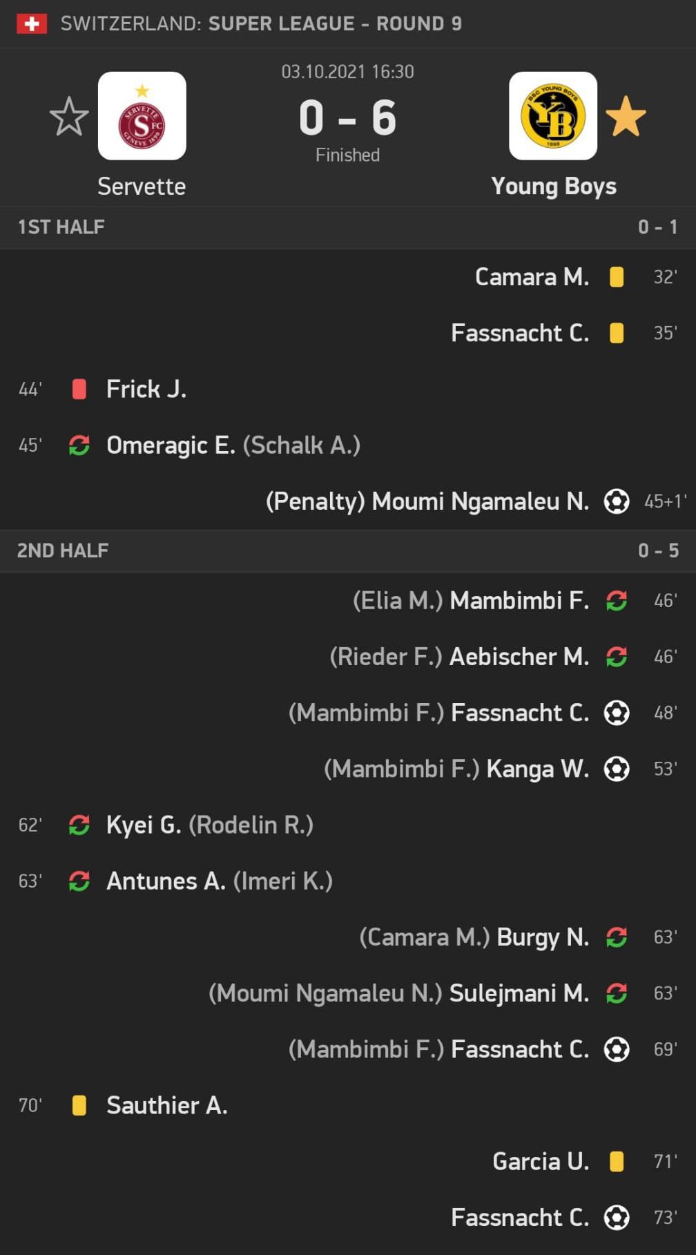 Ancora sei pere in trasferta oggi al Servette di Ginevra, non esattament gli ultimi arrivati