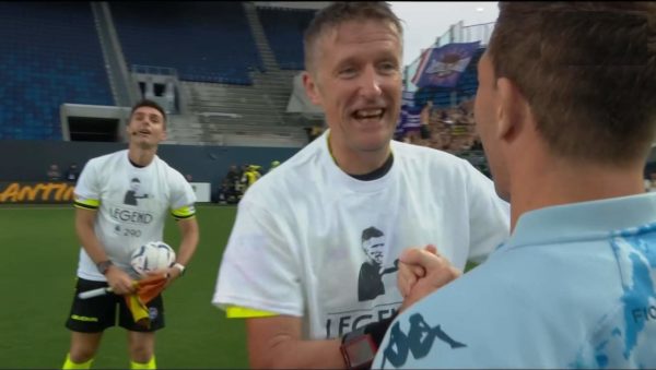Accompagnato dagli applausi dei calciatori in campo, indossava una maglietta, lui e tutta la terna arbitrale, con la sua foto e la scritta “Legend”.