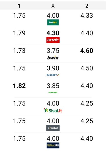 e un sogno sono anche le quote che non ci danno per spacciati anzi, le quote a 1.75 dei padroni di casa sono altine...