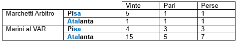 Questi i precedenti di Marini in sala VAR con l'Atalanta