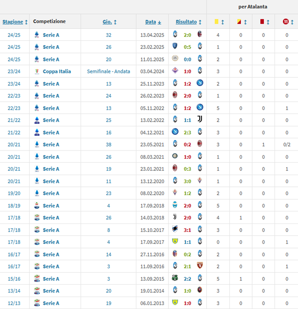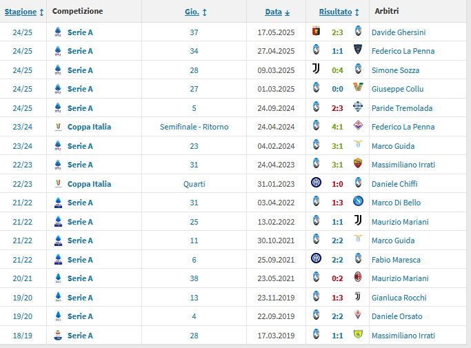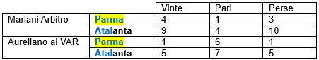 Questi i precedenti di Mariani quando ha arbitrato l'Atalanta