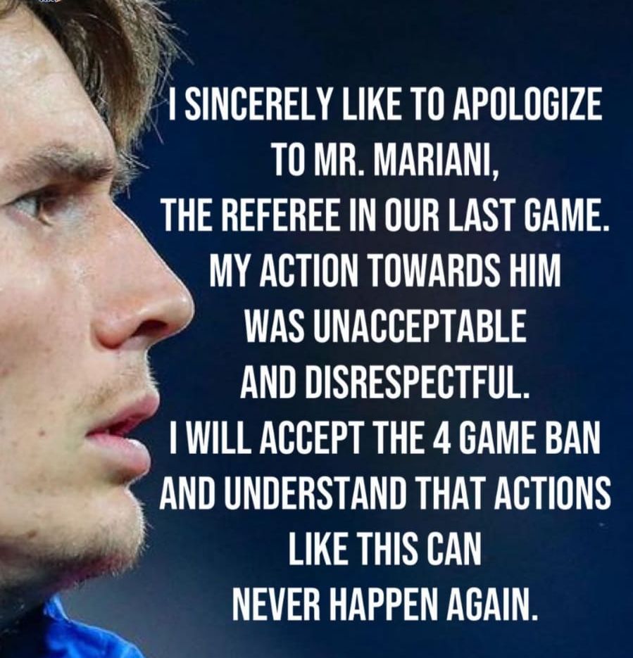 Come piacere mi ha fatto quello che è successo dopo. Calata l'adrenalina Martino si scusato pubblicamente, ha detto che avrebbe accettato senza ricorso la squalifica per avere uno "sconticino" che in questi casi non si nega mai, ed alla stangata di 4 giornate ha chiesto alla società di non fare ricorso, esemplificazione di quella integrità che in molti anni raramente ho visto e che mi fa essere orgoglioso del fatto che giochi per noi.