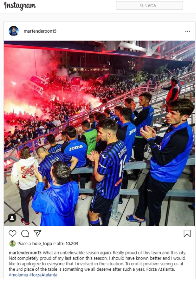 martenderoon15 What an unbelievable season again. Really proud of this team and this city. Not completely proud of my last action this season, I should have known better and I would like to apologize to everyone that I involved in the situation. To end it positive: seeing us at the 3rd place of the table is something we all deserve after such a year. Forza Atalanta.