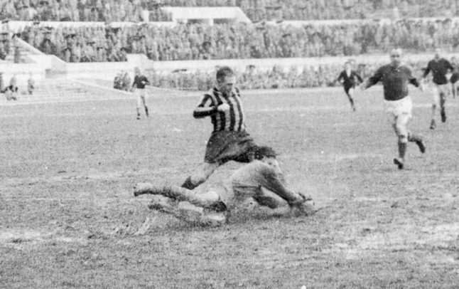 Anni prima, nel corso della partita Roma Atalanta, trasmessa in diretta televisiva RAI, nel corso di un sabato pomeriggio ebbi modo di assistere alla sciagurata conclusione della carriera di un nostro celebre ed amato centravanti, il danese Paul Rasmussen, detto Rassi, che a seguito di una criminale entrata del romano Cardarelli, si fratturò malamente una gamba. Ho uno splendido ricordo di lui, biondiccio e tracagnotto, con gambe arcuate, una corsa irresistibilmente potente, ed un tiro micidiale a rete. Qui il ricordo si sofferma sulla sua velocità, un poco traballante,ma irresistibile, che ricordava una nave sbattuta dal vento...