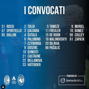 23/07/2020 | 21.28 27 Milan - Atalanta : i convocati, manca Piccoli Per la partita ti domani 23 convocati, oltre ad Ilicic manca anche Piccoli By brignuca