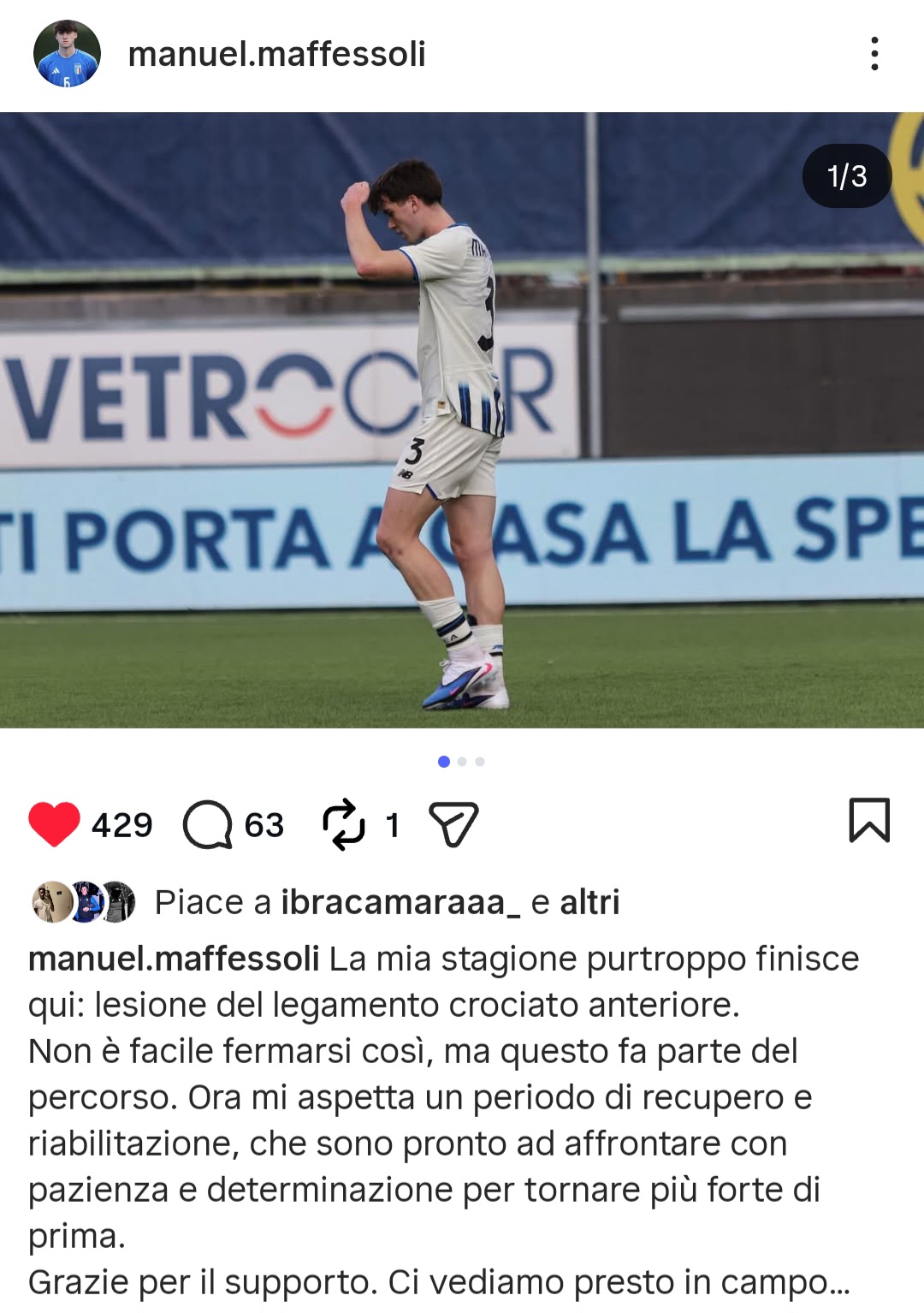 Mandiamo un grande abbraccio e facciamo un grosso in bocca al lupo al nostro Manuel Maffessoli, centrale difensivo mancino classe 2007 e colonna portante dell'Atalanta Primavera e della nazionale italiana U19 che purtroppo ha finito la sua stagione anzitempo a causa di un infortunio al crociato. Mola mia Maffe! 💪🏼⚫️🔵