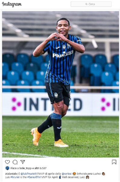atalantabc È @luisfmuriel9 l'MVP di aprile della @seriea! ? Enhorabuena Lucho! ??