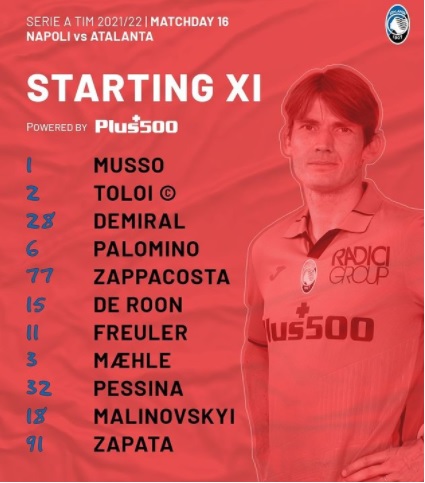 Napoli - Atalanta formazioni ufficiali: davanti Pessina Malinovskyi e Zapata