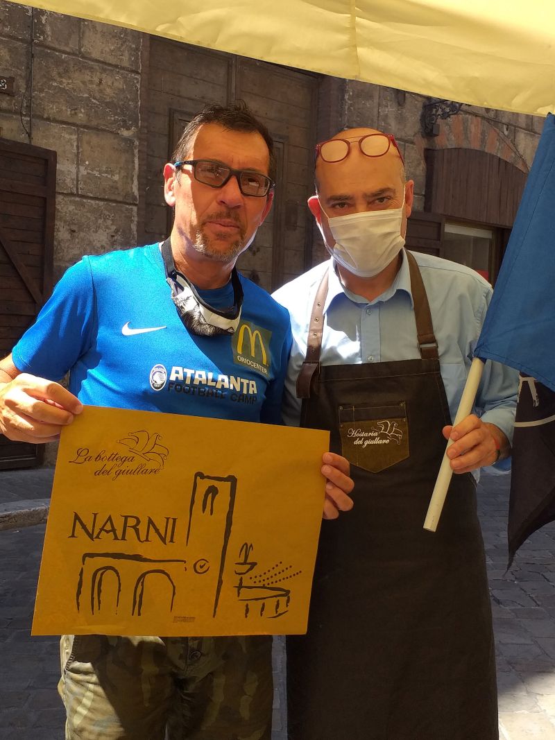 A passeggio con la maglietta dell'Atalanta per le vie storiche di Narni (centro geografico dell'Italia) vengo sorpreso da Rodolfo che salta fuori dal suo locale sventolando per strada la bandiera dell'Atalanta!