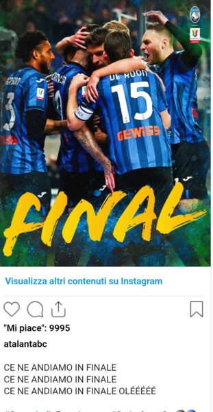 Notte di festa ieri per l'Atalanta, che ribalta lo svantaggio dell'andata nella semifinale di ritorno di Coppa Italia contro la Fiorentina e strappa il pass per la finale.