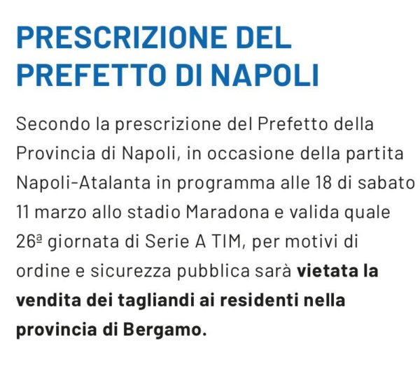Molti tifosi nerazzurri avevano gia' predisposto l'organizzazione per la trasferta, alla luce del comunicato qui sotto, ripetiamo, da verificare, potrebbero essere costretti a rinunciarvi