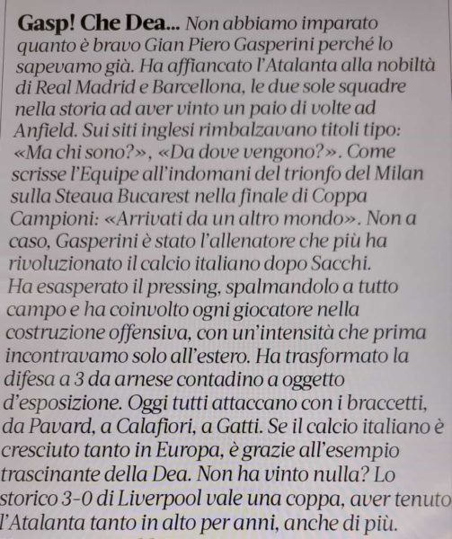 (Sono rimasto impressionato dall'Atalanta. Organizzazione brillante, motivazione, competitività. Kelleher (il portiere NDR) ha commesso un grave errore, ma va notato che anche due parate/bloccate hanno impedito loro di segnare di più.