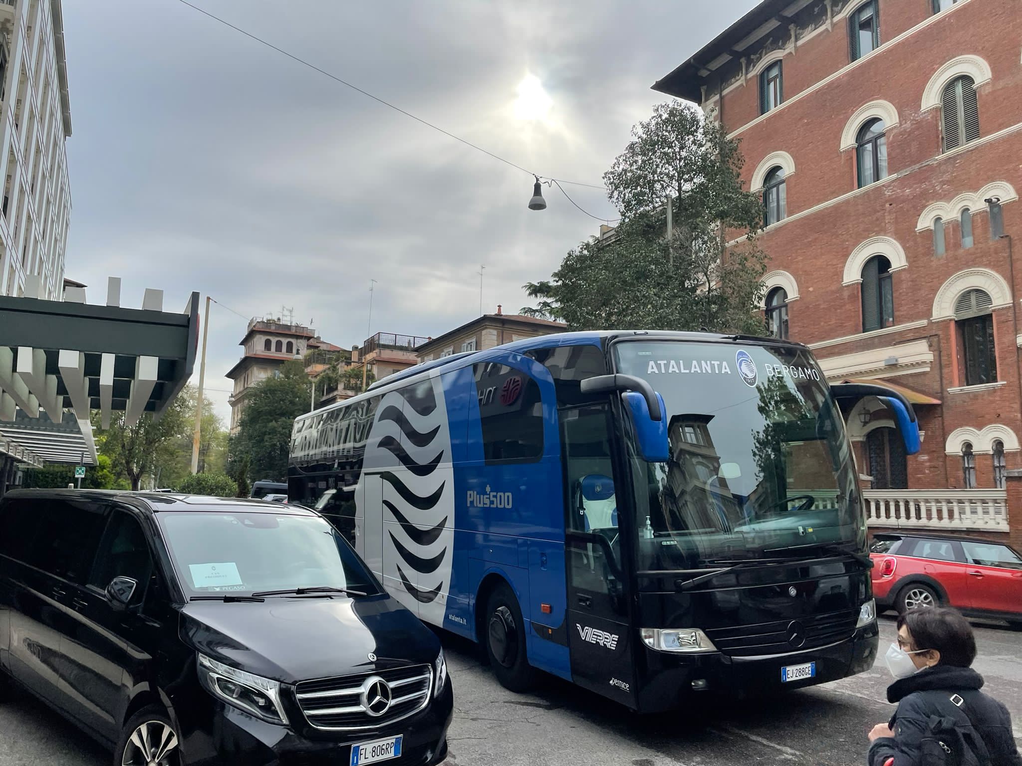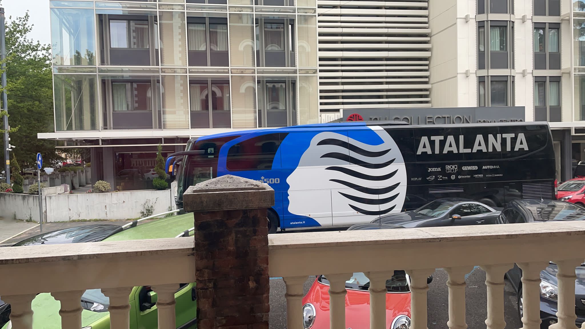 Il pullman dei nostri in pieno centro a Roma, quartiere Prati, dove forse (vista la zona elitaria) il fondo stradale è meno tormentato che nel resto della capitale