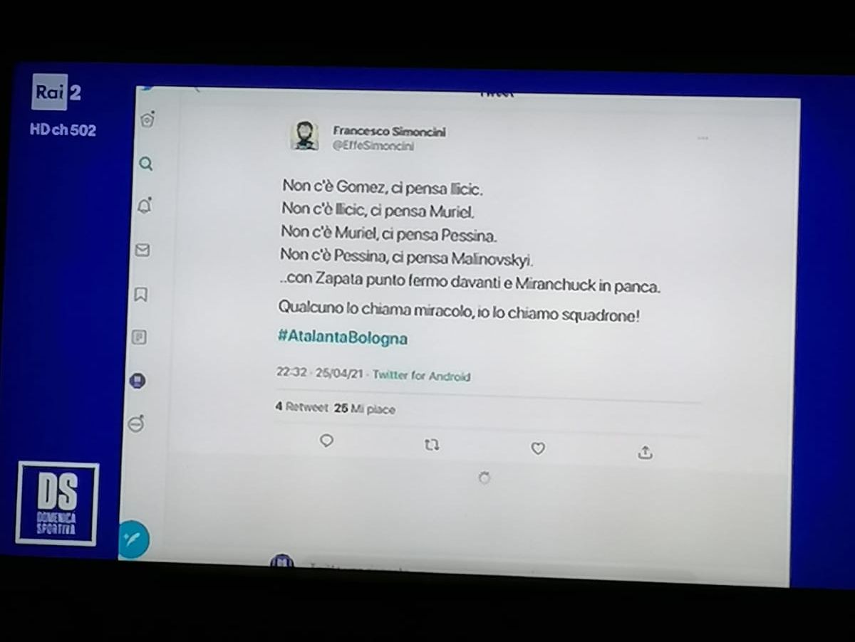 che ha ripreso un tweet del nostro "frontman":