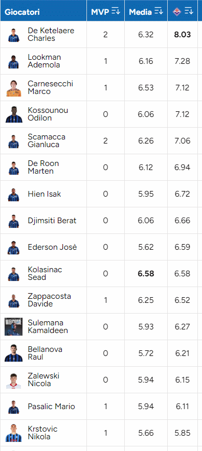 Le pagelle dopo lo scontro con i viola sono molto simili a quelle di Francoforte con i primi due posti saldamente in mano ad un mostruoso CDK cui il solo Lookman puo' vedere da abbastanza vicino.