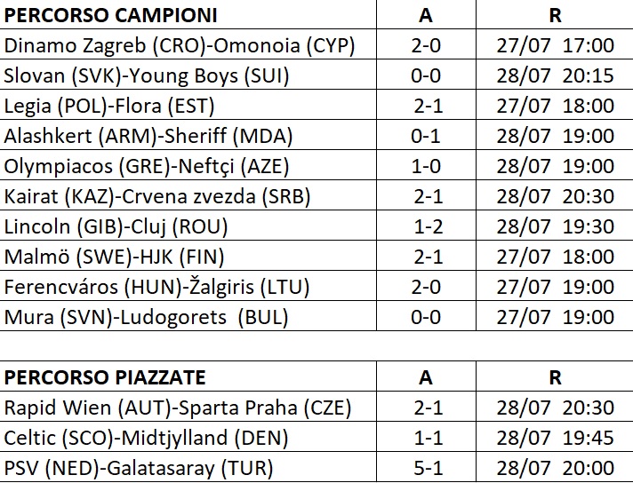 Da segnalare fra le squadre che hanno disputato il turno, due nostre avversarie nelle due partecipazioni precedenti, i croati della Dinamo Zagabria che ha vinto 2-0 e che avevamo affrontato il primo anno ed i danesi del Midtiylland nostri avversari durante la seconda partecipazione.