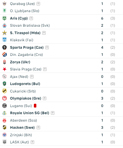 Dopo le 10 partite di stasera si è complicato il quadro delle qualificate ai gironi di Europa League. Non ci sarà la Dinamo Zagabria, eliminata stasera, mentre l'Ajax la spunta nonostante la sconfitta.