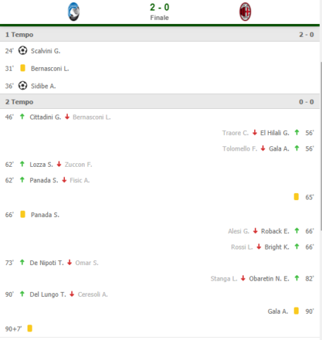 Finisce il primo tempo sul punteggio di 2 a 0, Atalanta padrona del gioco con diverse occasioni in attacco, Milan mai pericoloso.