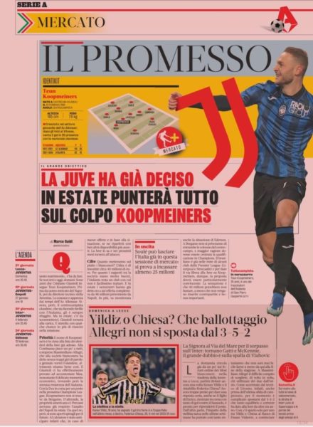 Ieri abbiamo parlato in un pezzo della criticabile esposizione della notizia da parte dells Gazzetta che oggi mette tutto sull'edizione cartacea in edicola. Ci preme inoltre ribadire che una promessa implica una presa di posizione da parte del soggetto stesso e non dalla controparte. A chi, a cosa e quando si è mai promesso Teun vorremmo proprio saperlo. C'è qualcuno che a Zingonia ha promesso il calciatore ai bianconeri? Non ci risulta. Al limite dovevano intitolare il pezzo "L'obbiettivo" o qualcosa del genere visto che a muoversi toccherà alla dirigenza juventina, eventualmente. Lo fanno per destabilizzare? O non sanno fare il loro lavoro o lo fanno apposta. Alla fine tra pochi giorni incontreremo la Juve sul campo e fare venire il tarlo nella capoccia di un giocatore che ultimamente la timbra una volta si e la volta dopo anche, ci vuole un attimo ed è anche gratis ....