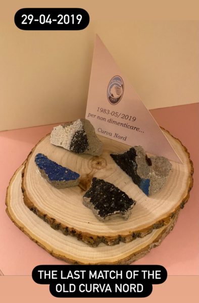 Ci stanno giungendo numerosi messaggi, su email e whatsapp, a ricordo dei 4 anni dall'ultima partita della vecchia Curva Nord e, a riprova dell'affetto della gente per quei gradoni leggendari che per diversi decenni hanno visto le imprese atalantine, molti ne hanno asportato e conservano a casa suoi pezzi come vere reliquie.