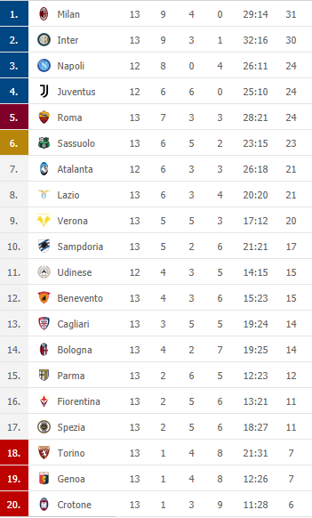 Questa la nuova classifica