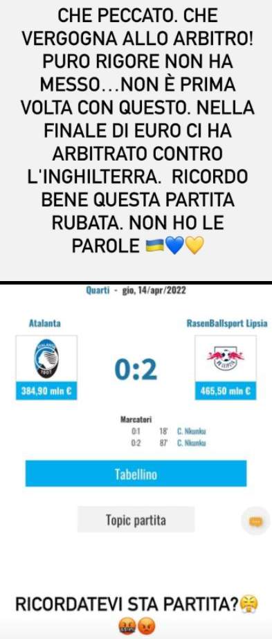 Stesso arbitro di noi con il Lipsia, come scrive la signora su Instagram