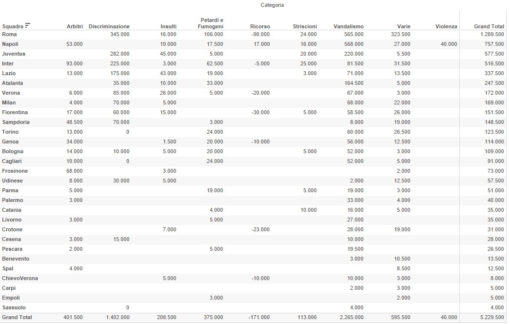Sanzioni: lo schema generale delle ultime 6 stagioni. Atalanta al sesto posto