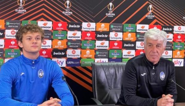 Giorgio Scalvini in conferenza stampa per analizzare la sfida contro lo Sporting in programma domani sera a Bergamo.