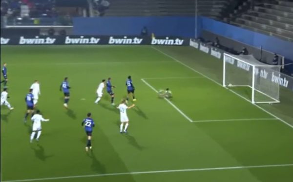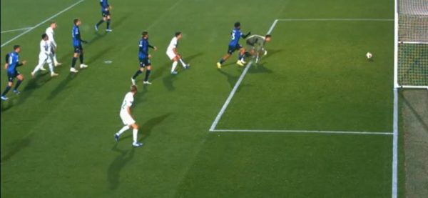 Evento molto raro nel calcio. 21mo della ripresa e tiro quasi a colpo sicuro di un portoghese. Palo sinistro e la palla che passeggia sulla linea sino al palo successivo (da uno dei nostri fermo immagini sembra nettamente dentro ma non e' cosi').