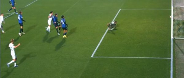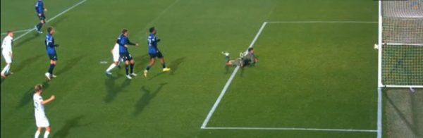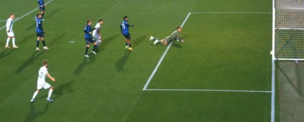 Evento molto raro nel calcio. 21mo della ripresa e tiro quasi a colpo sicuro di un portoghese. Palo sinistro e la palla che passeggia sulla linea sino al palo successivo (da uno dei nostri fermo immagini sembra nettamente dentro ma non e' cosi').