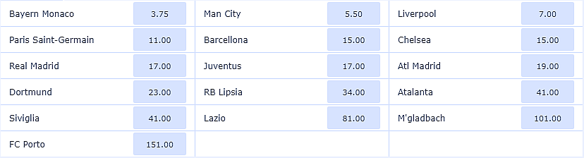 Ecco le quotazioni sul vincente finale della Champions League che fornisce oggi William Hill, una delle maggiori case di scommesse d'Europa.