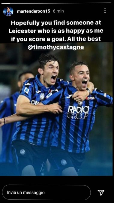 Ecco in sequenza il video tributo a Castagne delL'atalanta, il saluto di Tim al popolo atalantino e un pensiero di De Roon al compagno con "la speranza che al Leicester possa trovare qualcuno che gioisca quanto lui per un suo gol".