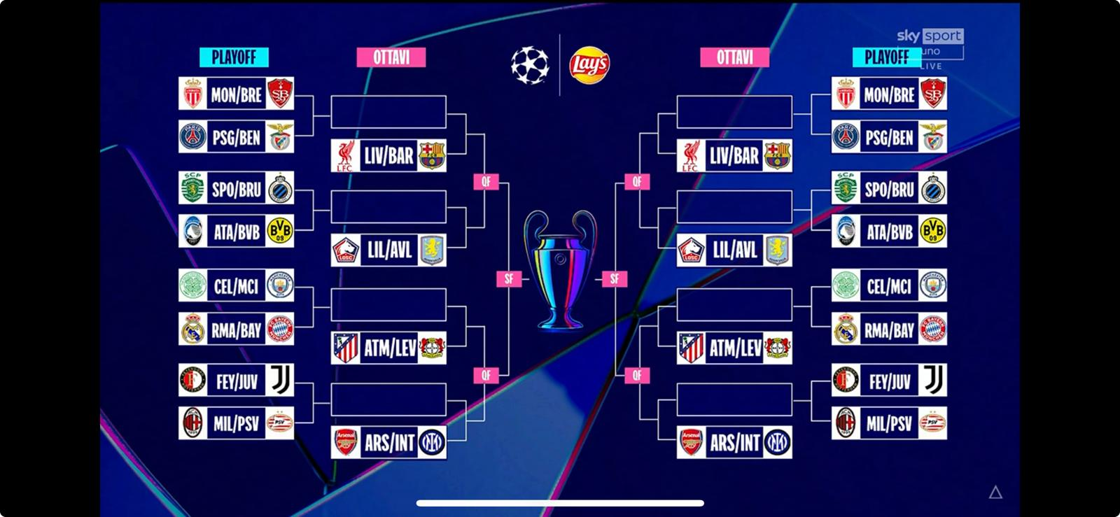 ECCO IL QUADRO DELL'ELIMINAZIONE DIRETTA. GIOCHEREMO CONTRO SPORTING LISBONA O BRUGES