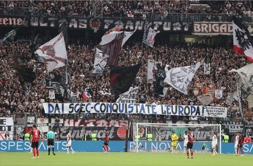 Striscione dei tifosi dell'Eintracht Frankfurt per mercoledi