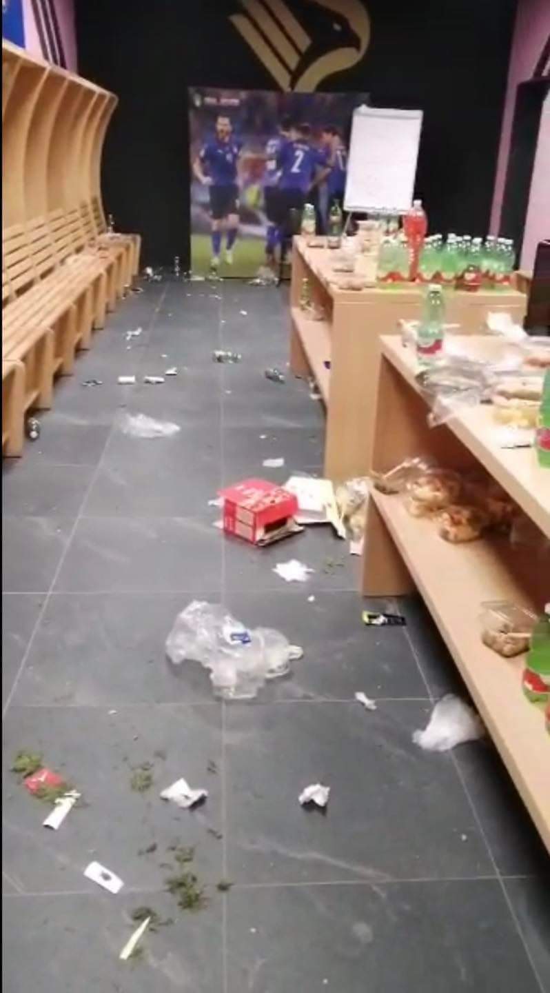 Qui sotto lo spogliatoio dello stadio di Palermo giovedi' sera come e' stato lasciato dai giocatori della nostra Nazionale dopo l'eliminazione dai mondiali patita al 92' dalla Macedonia