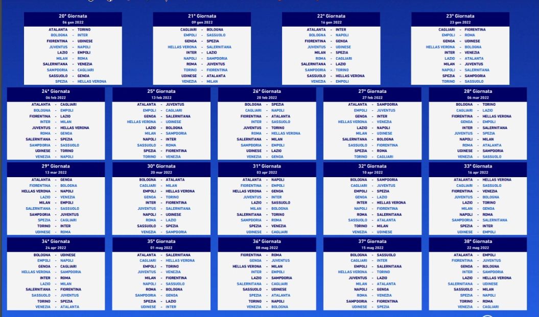 TUTTE LE GIORNATE DEL CAMPIONATO SUL PDF UFFICIALE DI PRODUZIONE E PROPRIETA' DI GAZZETTA.IT A QUESTO LINK