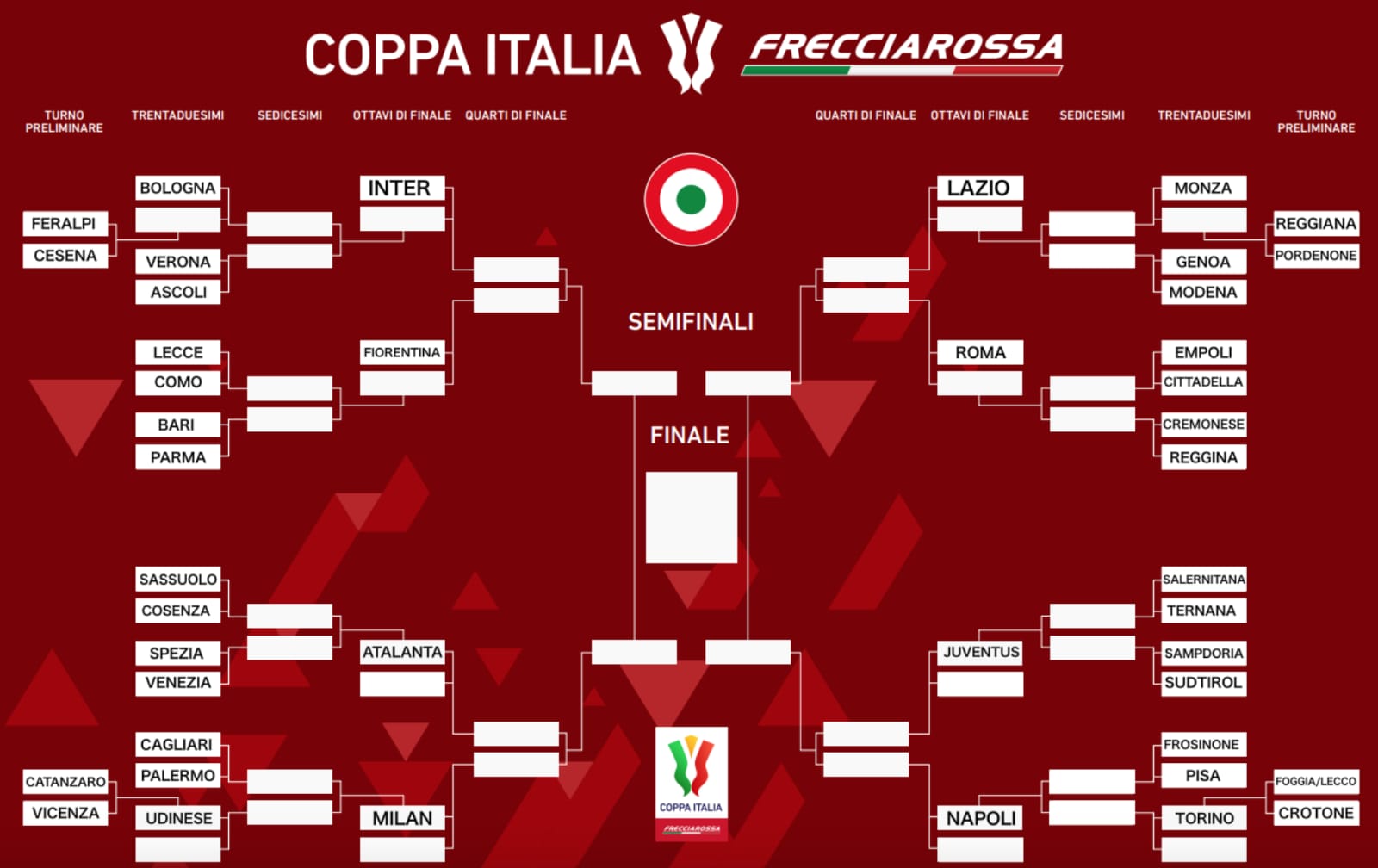 Pubblicato il tabellone della prossima edizione, al via il 6 agosto col turno preliminare e con la finale in programma mercoledì 15 maggio 2024. Possibile semifinale Inter-Milan, mentre il derby Lazio-Roma potrebbe già esserci ai quarti, così come Juve-Napoli. Ecco tutte le partite, gli incroci e le date