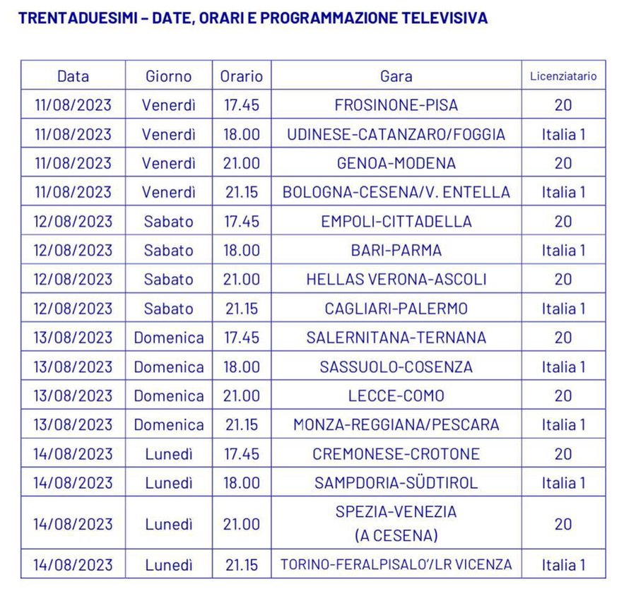 La vincente di CAGLIARI-PALERMO contro la vincente di CATANZARO o FOGGIA-UDINESE