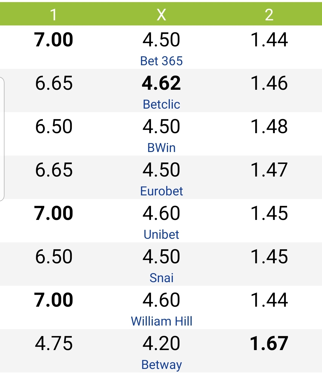 Le quote parlano di grande squadra contro squadra in affanno.. addirittura a 7 la vittoria dell'Udinese contro l' 1.44 dei nostri...